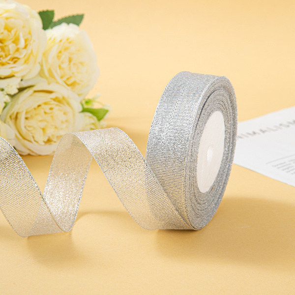 Лента парча (2,5 см*22,85 м) Мерцающий блеск, Серебро, Металлик, 1 шт.